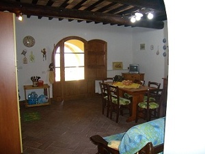 Realizzato in stile vecchia Toscana con pavimenti in mattoni, soffitti con travi in legno e tavelle in cotto artigianale, infissi in legno massello,ampia sala con angolo cottura, ampia camera, corridoio, bagno con antibagno, vani sottoscala, vano di ingresso. Giardino privato di circa 100 mq, posto auto coperto.Locale uso ripostiglio.